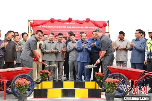 柬埔寨副首相兼發展理事會第一副主席孫占托主持當天儀式。柬公共工程與運輸部大臣賓波尼以及駐柬中資企業代表、橋梁工人、學校師生和民眾共同見證這一重要時刻。