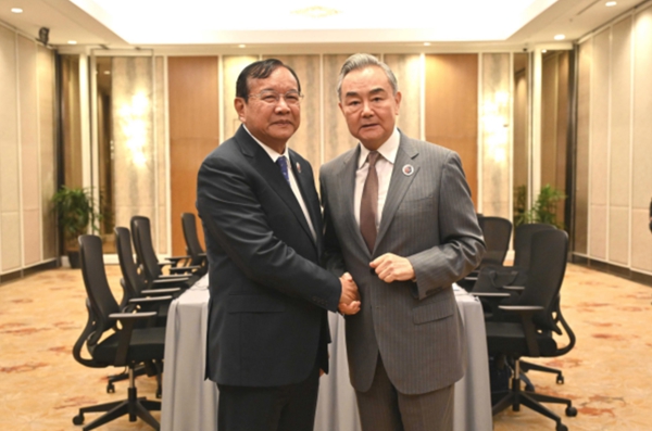 王毅表示,中柬要加強在三大全球倡議框架內合作,充實兩國“鉆石六邊”合作架構,落實好“工業發展走廊”和“魚米走廊”合作規劃,推動早期收獲項目落地見效。希望雙方采取更有力、更有效措施,堅決打擊網賭電詐、制假走私等跨境犯罪,徹底鏟除毒瘤,維護兩國人民安全。