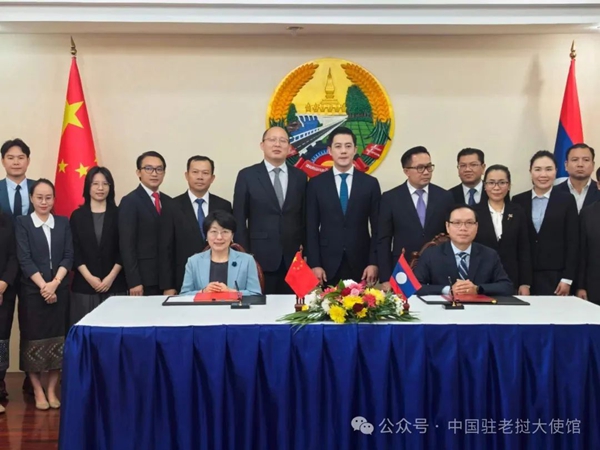 7月15日,方虹大使同老撾副外長邁通簽署2025年瀾湄合作專項基金項目合作協議。