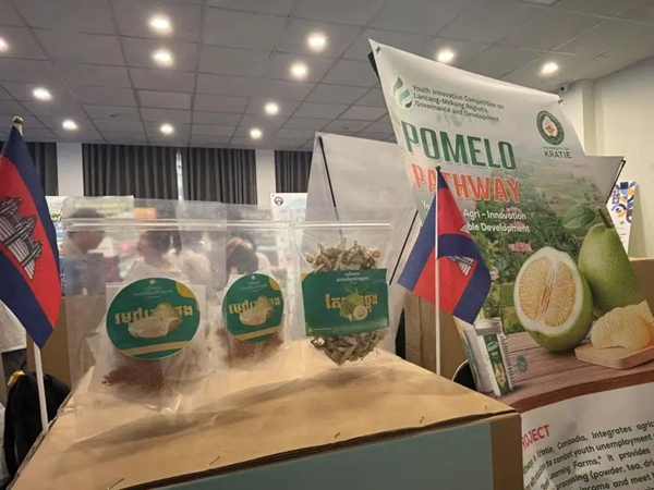 不過,柬埔寨女孩們帶來柚子干別有深意。她們告訴澎湃新聞記者,在柬埔寨尤其是她們所在桔井省等地,農業潛力豐富,但青年失業、獲得優質教育的機會有限以及缺乏聯動市場的技能培訓等問題突出。她們帶來的方案,就著眼于柚子這個具體的產品,希望通過將農業創新與正規教育相結合,使年輕人成為農村發展的推動者,提升當地人收入和就業情況。
