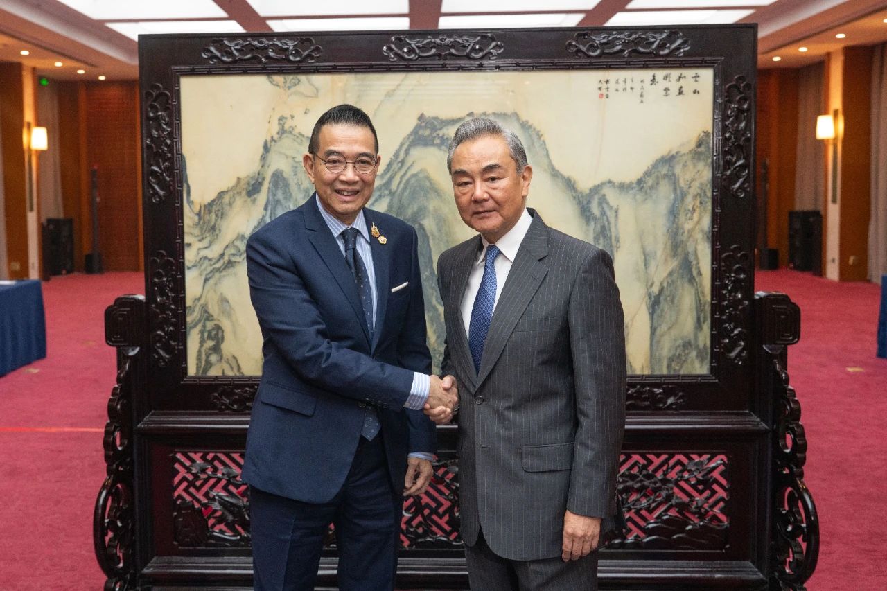 王毅表示,今年是中泰建交50周年暨“中泰友誼金色50年”。半個世紀以來,無論國際風云如何變幻,雙方始終堅定相互支持,推進各領域務實合作,“中泰一家親”更加深入人心。在新的歷史起點上,中方愿同泰方一道,落實兩國領導人重要共識,深化雙多邊戰略協作,推動中泰命運共同體建設結出新碩果,引領瀾湄合作邁上新臺階,為地區和平穩定注入新動力。雙方要保持高層交往,加強互利合作,辦好建交50周年后半場慶?;顒?,夯實兩國友好民意基礎。中方愿同泰方一道,加快中泰鐵路建設,鼓勵更多企業赴泰投資興業,深挖綠色發展、數字經濟、人工智能等領域合作潛力,確保地區產供鏈穩定暢通。希望泰方為中國企業提供更多政策支持和便利條件。