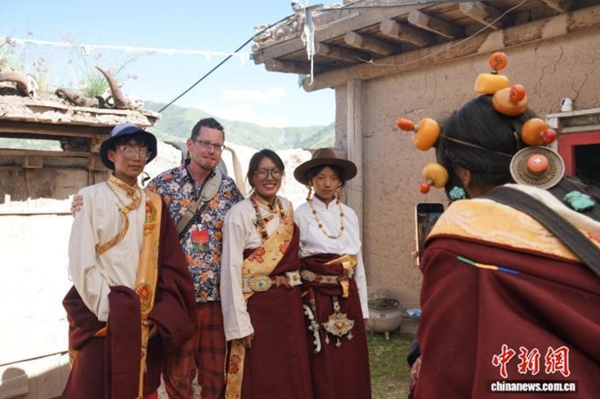 “一路采風非常累,但這里很美!”來自希臘的攝影師喬治說,“我的眼睛告訴我,這里有綠色的風景、干凈的河流。當地藏族居民非常友好,喜歡和我合影。這幾天,我給他們拍了很多照片,他們也給我拍了很多照片?!?/p>