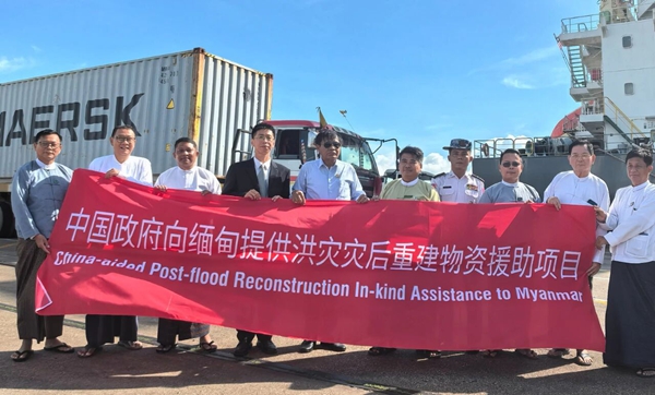近日,中國政府援助緬甸洪災災后重建物資陸續運抵仰光港口。9月15日,賈俊杰公參、仰光省政府自然資源部部長佐溫在港口進行交接。