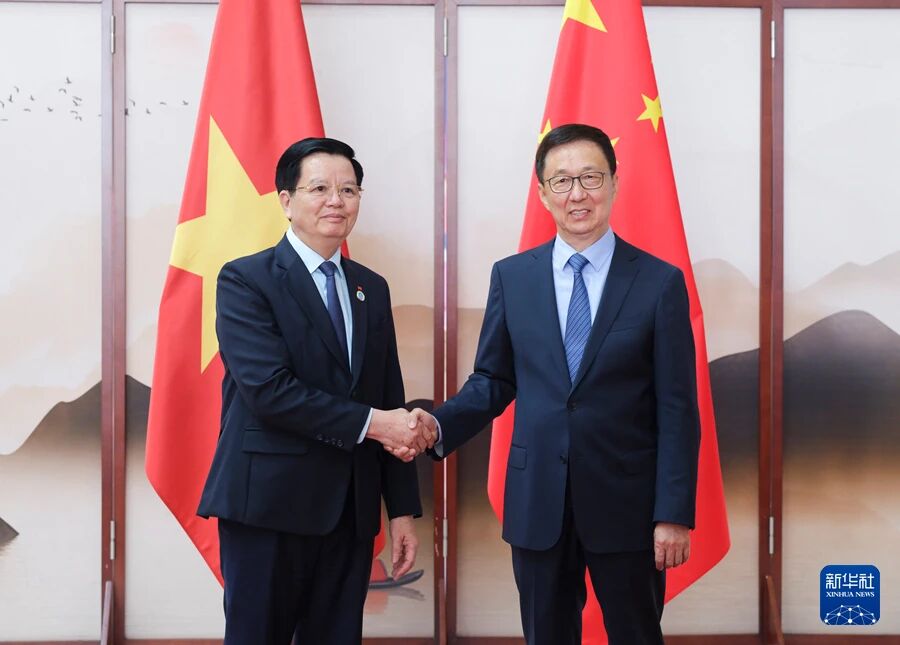 會見梅文政時,韓正表示,中越兩黨兩國高層保持頻密交往,就推進全面戰略合作達成重要共識,為新形勢下中越命運共同體建設指明方向。今年是兩國建交75周年暨“人文交流年”。中方愿同越方一道,以兩黨兩國領導人戰略共識為指引,賡續傳統友誼,深化互利合作,加快構建具有戰略意義的中越命運共同體,為各自社會主義現代化建設注入強勁動力。