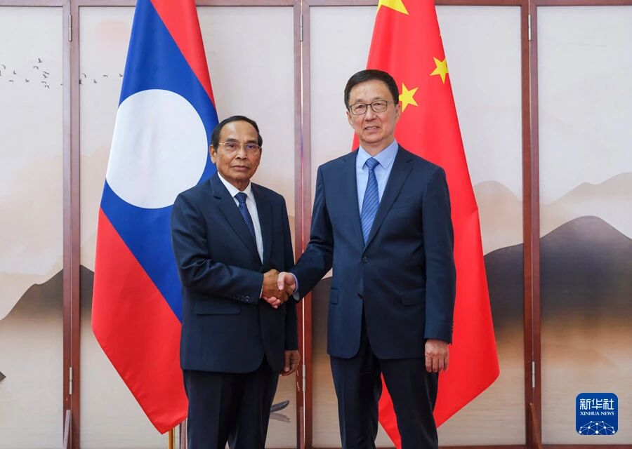 會見本通時,韓正表示,在兩黨兩國最高領導人戰略引領下,中老命運共同體建設扎實向前推進。不久前,習近平總書記、國家主席同通倫總書記、國家主席舉行親切會晤,為深化新時期中老全面戰略合作擘畫藍圖。中方愿同老方共同落實高層重要共識,深化中老命運共同體建設,辦好明年建交65周年慶?;顒樱寖蓢鴤鹘y友好更加深入人心。