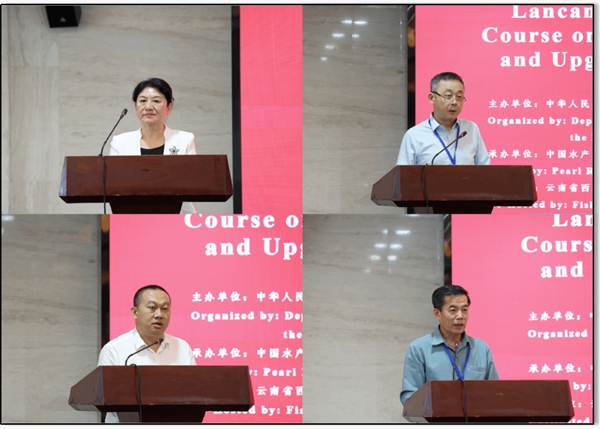 本次培訓班旨在推動瀾滄江—湄公河流域漁業資源養護和漁業技術提升。中國水產科學研究院副院長王玉梅、珠江水產研究所所長孫慧武、西雙版納州秘書長董俊、老撾南塔省農業林業廳宋賽·烏多姆副廳長等出席開幕式并致辭。