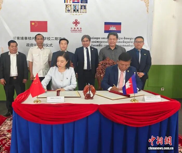 翁比倫代表柬埔寨政府感謝中方長期以來對柬援助支持,高度評價項目成效,表示希望同中方不斷深化教育等領域合作。