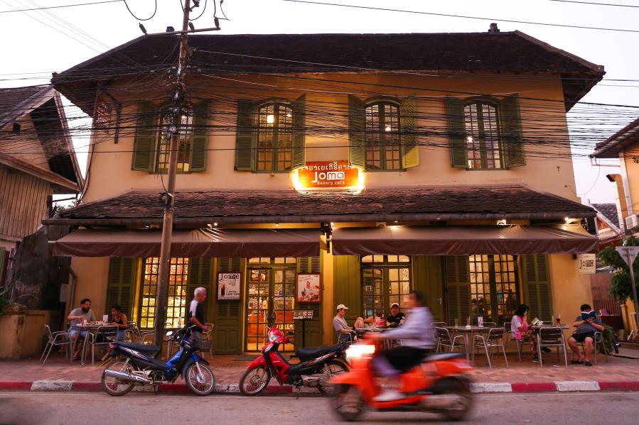 People sit at a cafe in Luang Prabang, Laos, on Dec. 26, 2019. (Photo by Kaikeo Saiyasane/Xinhua)
