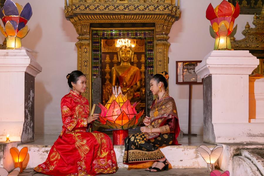 People pose for photos during the Boun Lai Heua Fai Festival in Luang Prabang, Laos, on Oct. 3, 2020. (Photo by Kaikeo Saiyasane/Xinhua)