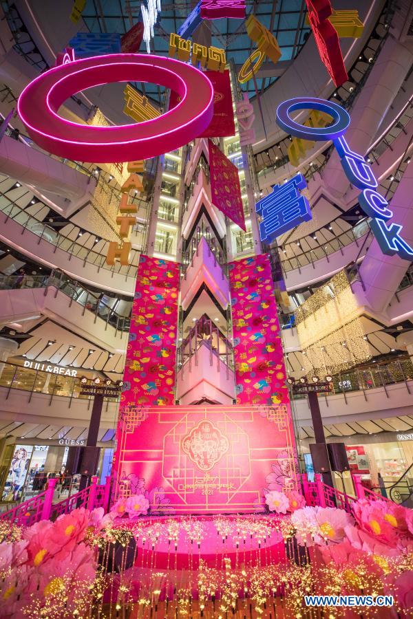 Shopping malls decorated with Chinese New Year elements in Thailand