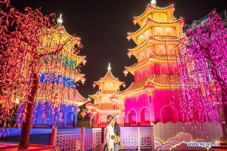 Shopping malls decorated with Chinese New Year elements in Thailand