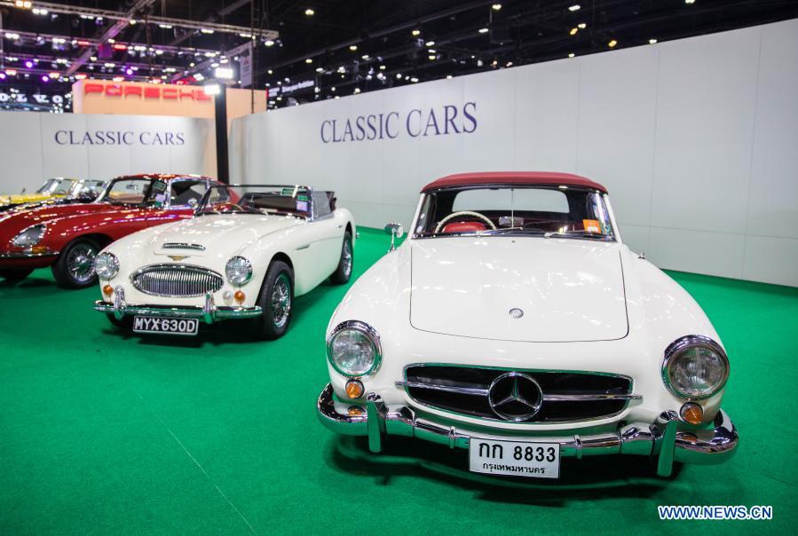Photo taken on March 24, 2021 shows classic cars displayed at the 42nd Bangkok International Motor Show in Bangkok, Thailand. The motor show will be held from March 24 to April 4 in Bangkok, where at least 34 car and motorcycle companies will exhibit their products. (Xinhua/Zhang Keren)
