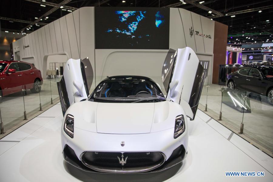 Photo taken on March 24, 2021 shows a Maserati MC20 car displayed at the 42nd Bangkok International Motor Show in Bangkok, Thailand. The motor show will be held from March 24 to April 4 in Bangkok, where at least 34 car and motorcycle companies will exhibit their products. (Xinhua/Zhang Keren)