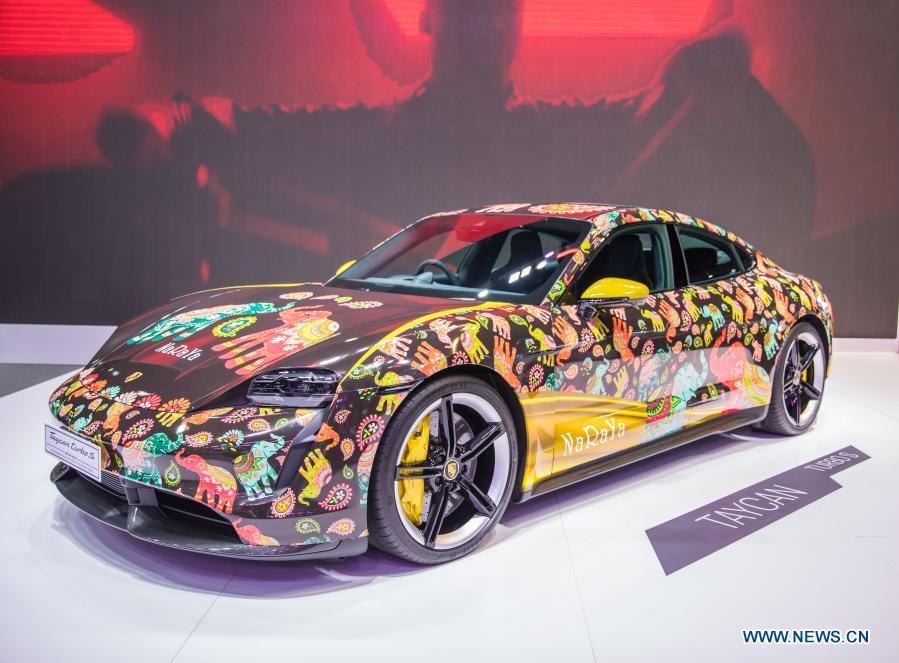 Photo taken on March 24, 2021 shows a Porsche car displayed at the 42nd Bangkok International Motor Show in Bangkok, Thailand. The motor show will be held from March 24 to April 4 in Bangkok, where at least 34 car and motorcycle companies will exhibit their products. (Xinhua/Zhang Keren)
