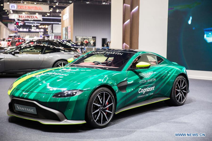 Photo taken on March 24, 2021 shows an Aston Martin car displayed at the 42nd Bangkok International Motor Show in Bangkok, Thailand. The motor show will be held from March 24 to April 4 in Bangkok, where at least 34 car and motorcycle companies will exhibit their products. (Xinhua/Zhang Keren)