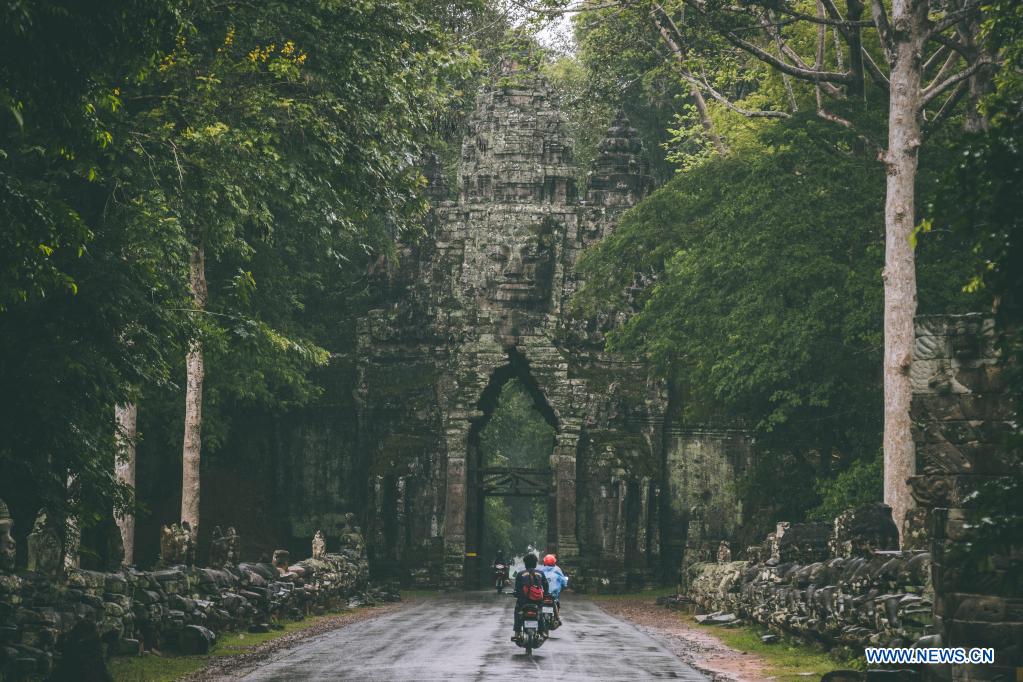 Photo taken on May 24, 2021 shows a view of the Angkor archeological park in Siem Reap, Cambodia. Located in Siem Reap province, the Angkor Archeological Park, inscribed on the World Heritage List of the United Nations Educational, Scientific and Cultural Organization (UNESCO) in 1992, is the kingdom's most popular tourist destination. (Apsara National Authority/Handout via Xinhua)