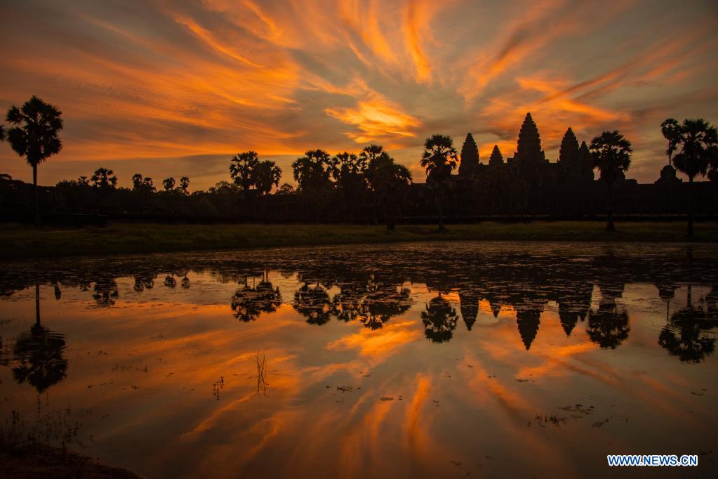 Photo taken on May 21, 2021 shows a view of the Angkor archeological park in Siem Reap, Cambodia. Located in Siem Reap province, the Angkor Archeological Park, inscribed on the World Heritage List of the United Nations Educational, Scientific and Cultural Organization (UNESCO) in 1992, is the kingdom's most popular tourist destination. (Apsara National Authority/Handout via Xinhua)