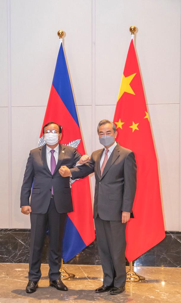 Wang Yi said, as all-weather iron friends and close partners, China and Cambodia have always helped and firmly supported each other. Last year, the two countries joined hands to fight the COVID-19 pandemic and promoted high-level exchanges and cooperation across the board. President Xi Jinping met with Cambodian King Norodom Sihamoni, conferred the Friendship Medal of the People's Republic of China to Queen Mother Norodom Monineath Sihanouk, and maintained strategic communication with Cambodian Prime Minister Samdech Techo Hun Sen. These efforts fully demonstrated the unbreakable traditional friendship between China and Cambodia and pushed forward the building of a China-Cambodia community with a shared future.