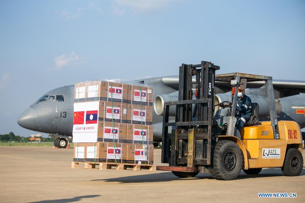 The second batch of COVID-19 vaccines donated by the People's Liberation Army (PLA) to the Lao People's Army, carried by PLA Air Force's Y-20 transport aircraft, has arrived at Wattay International Airport in Lao capital Vientiane.