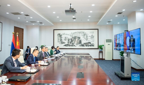 Chinese State Councilor and Foreign Minister Wang Yi on Thursday met with Lao Foreign Minister Saleumxay Kommasith via video link.