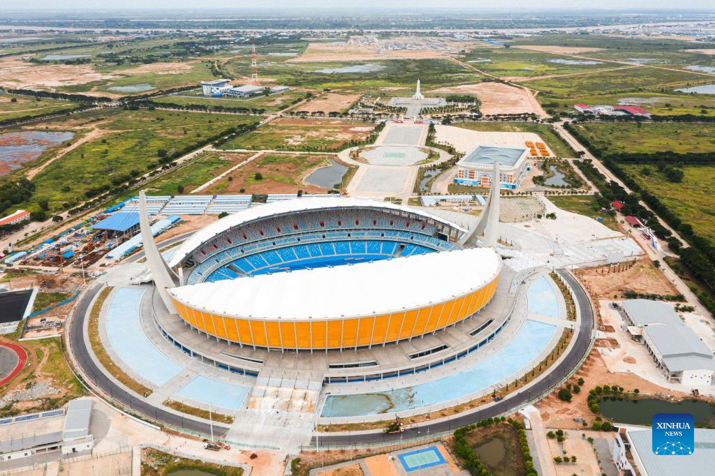 Aerial photo taken on Sept. 12, 2021 shows the China-funded Morodok Techo National Stadium in Phnom Penh, Cambodia. [Photo by Ly Lay/Xinhua]