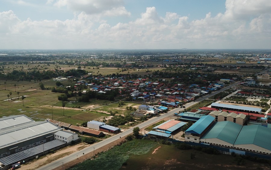 Aerial photo taken on March 25, 2022 shows the Chinese-built National Road No. 51 in Kampong Speu province, Cambodia. (Photo by Van Pov/Xinhua)