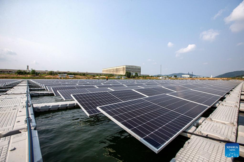 Photo taken on April 11, 2022 shows the solar floating project in Rayong, Thailand. The solar floating project in Rayong province was constructed by Banpu Company of Thailand with support of Chinese technology company Huawei. (Xinhua/Wang Teng)