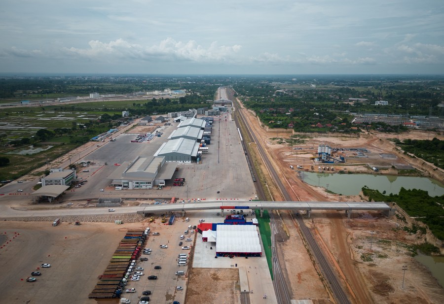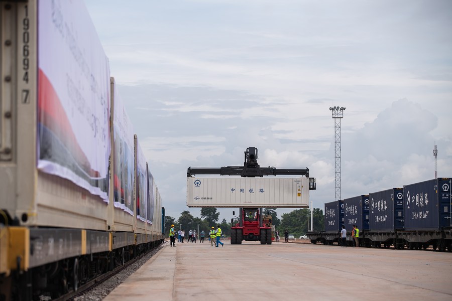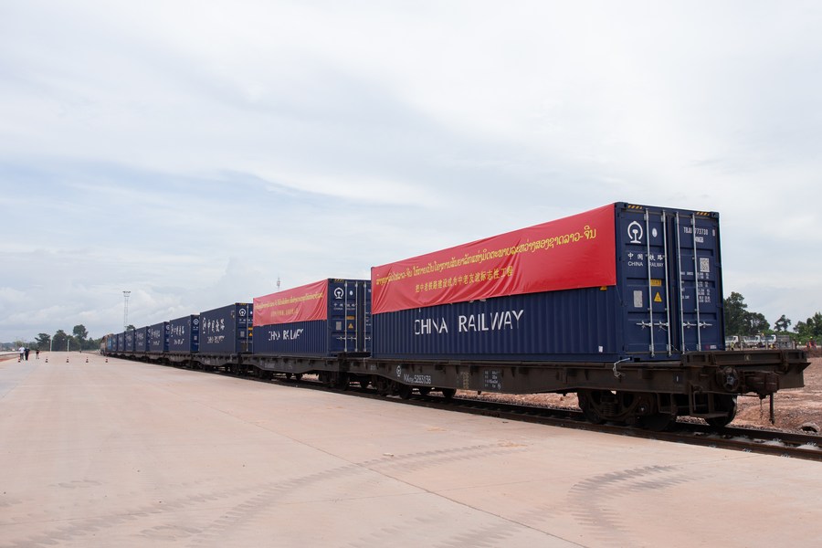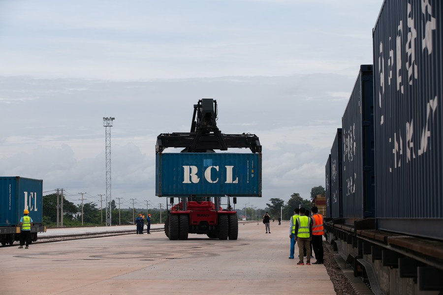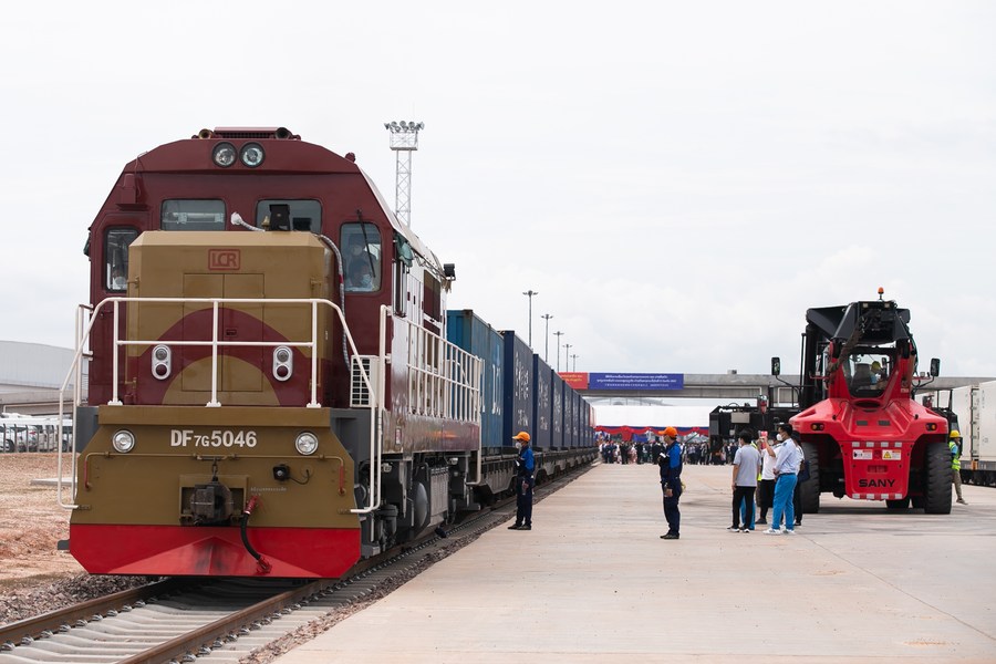 The freight transit yard was officially put into operation on Friday with the first batch of railway containers heading to Thailand's Laem Chabang port.