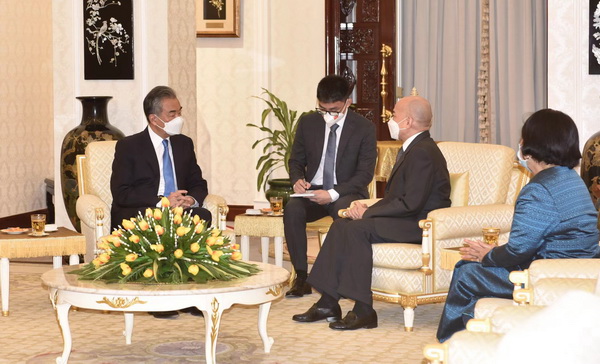 Sihamoni asked Wang Yi to convey Queen Mother Norodom Monineath Sihanouk's and his own cordial greetings and "miss you" sentiment to President Xi Jinping and his wife. Sihamoni thanked the Chinese government and people for providing precious long-term assistance for Cambodia's national development, and thanked the Chinese side for the staunch support for its effort to bring the pandemic under control. He expressed the confidence that under the strong leadership of President Xi Jinping, China will make new and greater achievements going forward.