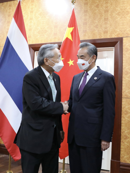 On August 4, 2022 local time, State Councilor and Foreign Minister Wang Yi met with Thai Deputy Prime Minister and Foreign Minister Don Pramudwinai on the sidelines of the series of foreign ministers' meetings on East Asia cooperation in Phnom Penh.