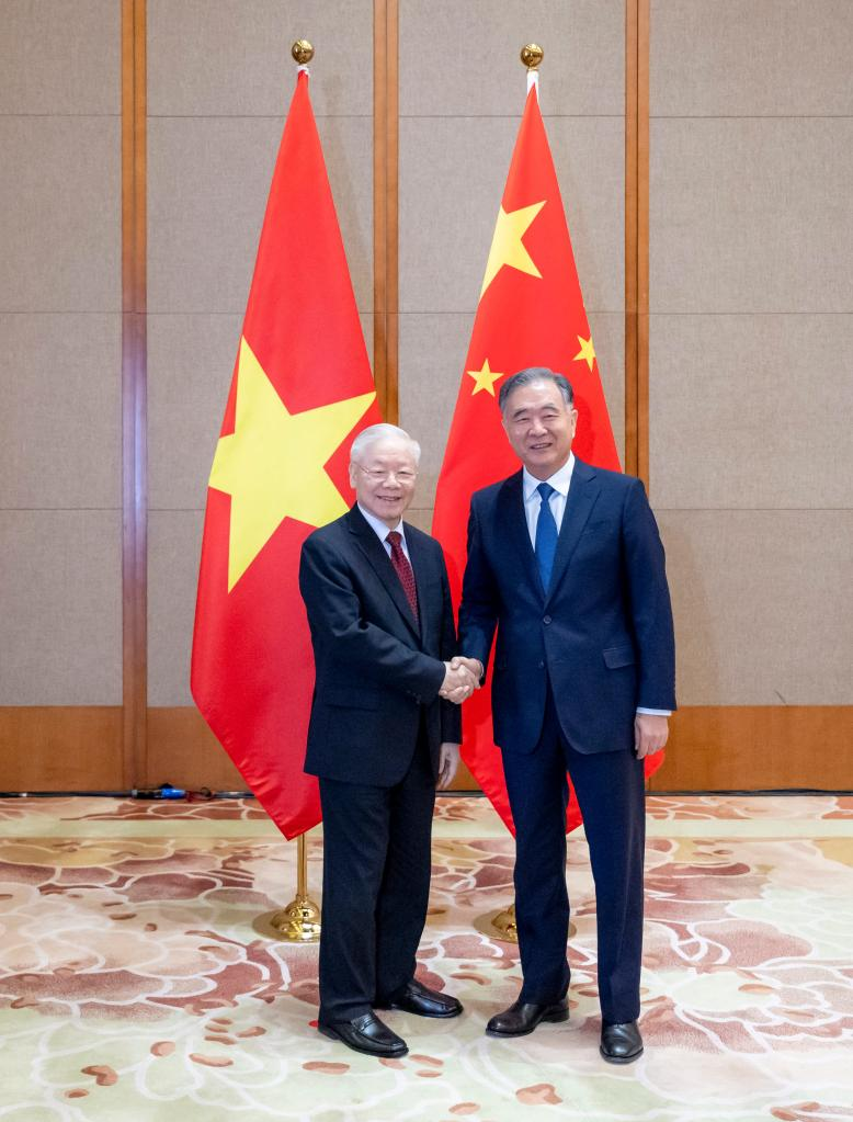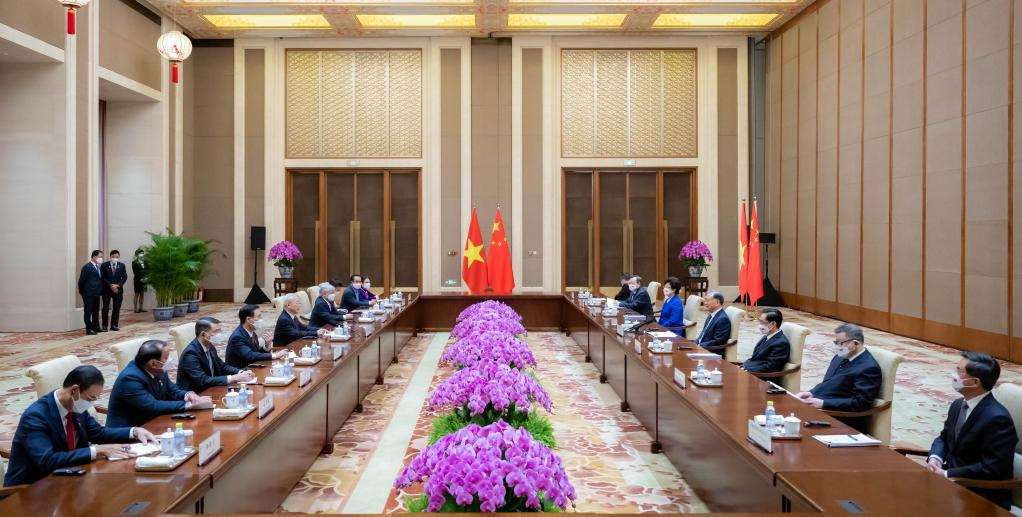 Wang, chairman of the Chinese People's Political Consultative Conference (CPPCC) National Committee, noted that China received Trong's official visit to China right after the 20th National Congress of the Communist Party of China (CPC). He said this shows that China attaches great importance to the special relationship of"comrades and brothers" between China and Vietnam and cherishes the traditional friendship between the two peoples.