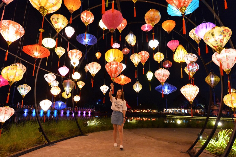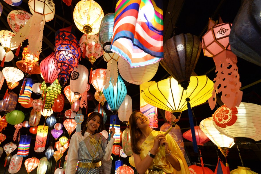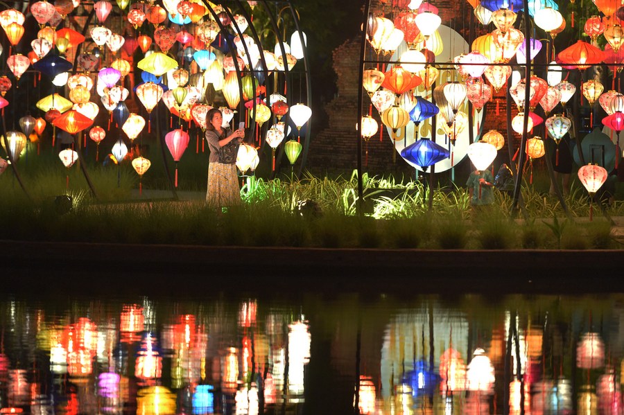 A woman takes photos at the Thailand International Lantern and Food Festival in Muangboran of Samut Prakan Province, Thailand, Nov. 4, 2022. (Xinhua/Rachen Sageamsak)A woman takes photos at the Thailand International Lantern and Food Festival at Muangboran, in Samut Prakan Province, Thailand, on Nov. 4, 2022. (Xinhua/Rachen Sageamsak)People visit the Thailand International Lantern and Food Festival at Muangboran, in Samut Prakan Province, Thailand, on Nov. 4, 2022. (Xinhua/Rachen Sageamsak)