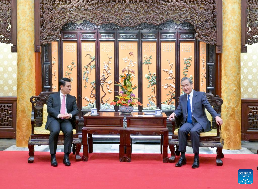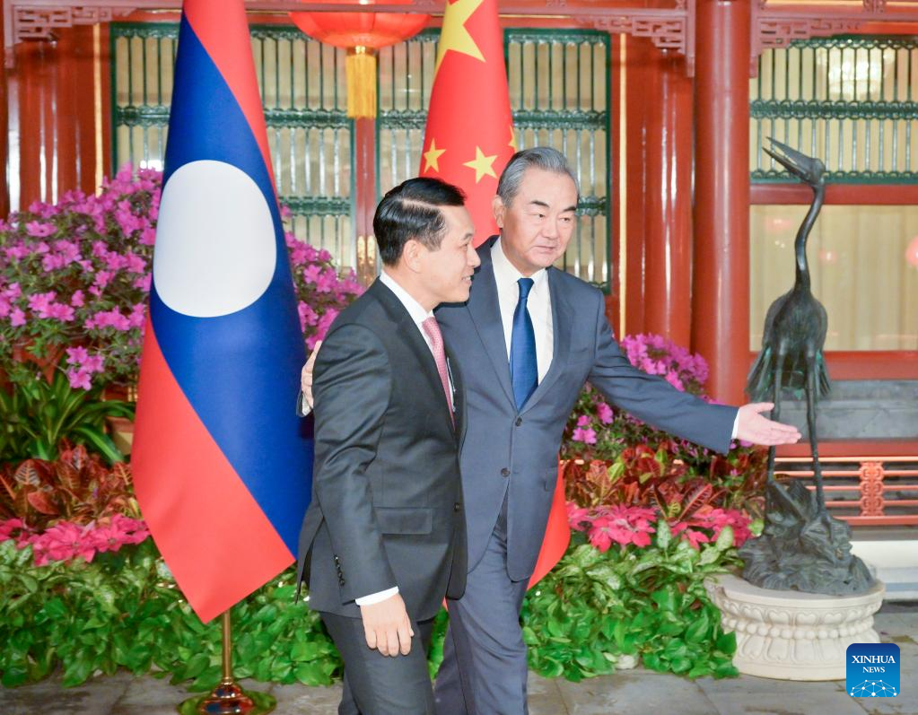 Wang Yi, director of the Office of the Foreign Affairs Commission of the Communist Party of China (CPC) Central Committee, met with Lao Deputy Prime Minister and Minister of Foreign Affairs Saleumxay Kommasith in Beijing on Monday.