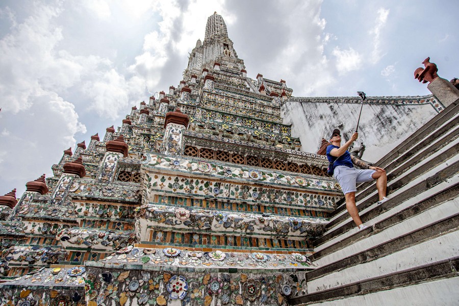 Chinese tourists visit the Grand Palace scenic spot in Bangkok, Thailand, May 1, 2023. (Xinhua/Wang Teng)A tourist takes selfies at the Grand Palace scenic spot in Bangkok, Thailand, May. 1, 2023. (Xinhua/Wang Teng)Tourists take photos at the Wat Arun in Bangkok, Thailand, May. 3, 2023. (Xinhua/Wang Teng)Tourists take photos at the Wat Arun in Bangkok, Thailand, May. 3, 2023. (Xinhua/Wang Teng)