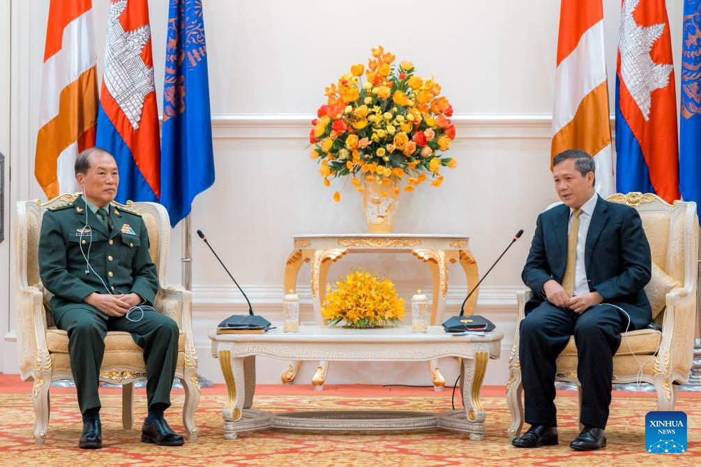 Cambodian Prime Minister Hun Manet met with He Weidong, visiting vice chairman of China's Central Military Commission, in Phnom Penh on Monday.