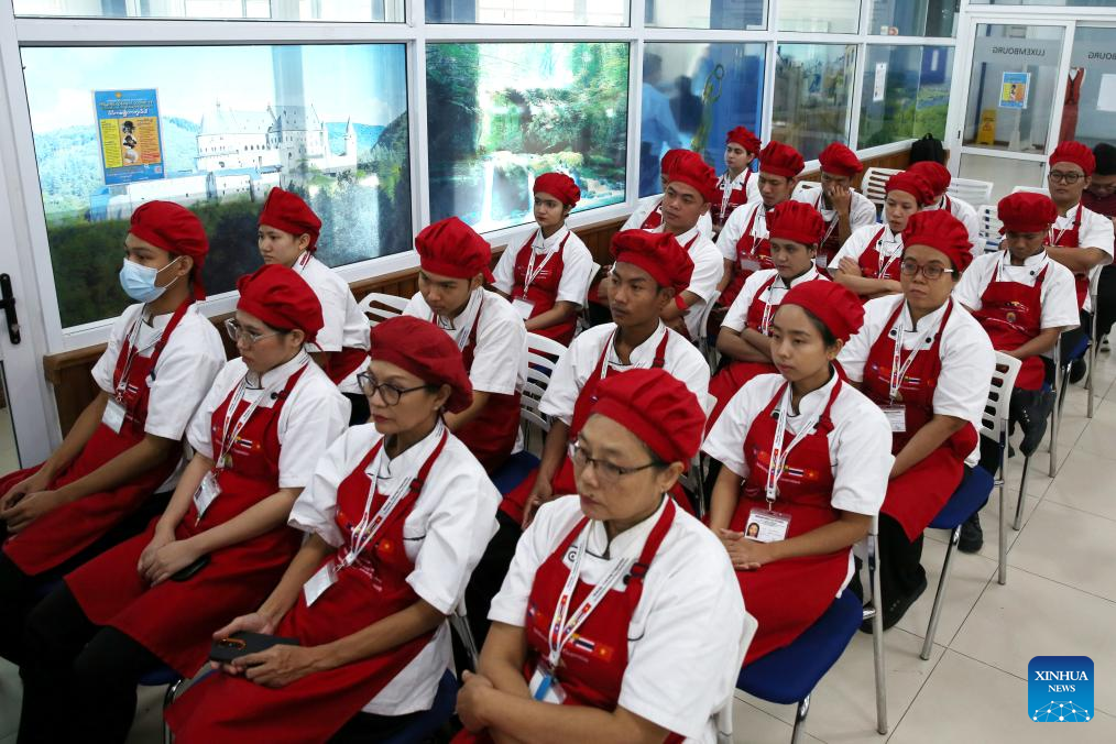 Students attend the opening ceremony of a Training of Trainers (ToT) bakery and pastry course at the Center for Tourism Development in Yangon, Myanmar, Jan. 29, 2024. A Training of Trainers (ToT) bakery and pastry course, funded by the Lancang-Mekong Cooperation (LMC) Special Fund 2022, was launched at the Center for Tourism Development in Yangon on Monday. (Photo by Myo Kyaw Soe/Xinhua)