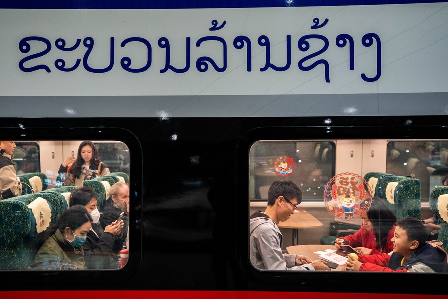 The China-Laos Railway connects Kunming in southwest China's Yunnan Province with Vientiane. The 1,035-km railway, a landmark project of high-quality Belt and Road cooperation, started operation on Dec. 3, 2021.