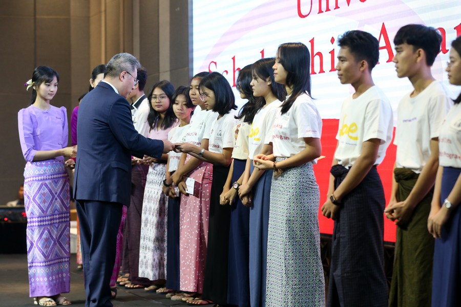 Speaking at the scholarship awarding ceremony in Yangon, Cao Jing, minister counselor of the Chinese embassy in Myanmar, noted that the University of Yangon has kept close exchanges and cooperation with educational institutions in China, which reflects the friendship and cooperation between the two countries.