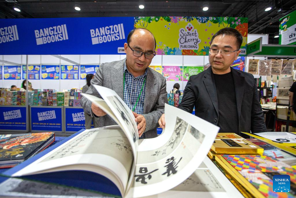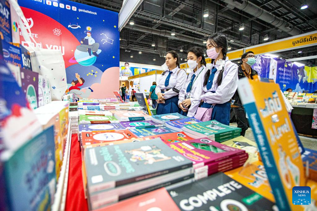 Visitors select books at the Bangkok International Book Fair 2024 in Bangkok, Thailand, March 28, 2024. The book fair kicked off here on Thursday and will last till April 8. (Xinhua/Wang Teng)