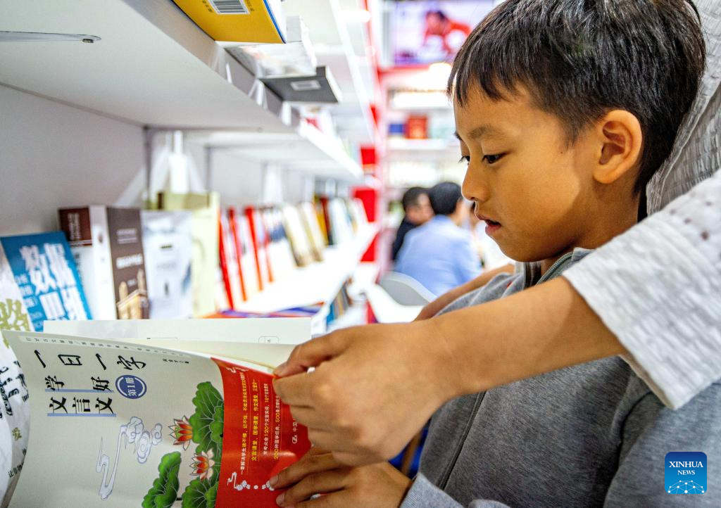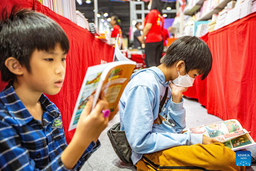 Visitors read books at the Bangkok International Book Fair 2024 in Bangkok, Thailand, March 28, 2024. The book fair kicked off here on Thursday and will last till April 8. (Xinhua/Wang Teng)