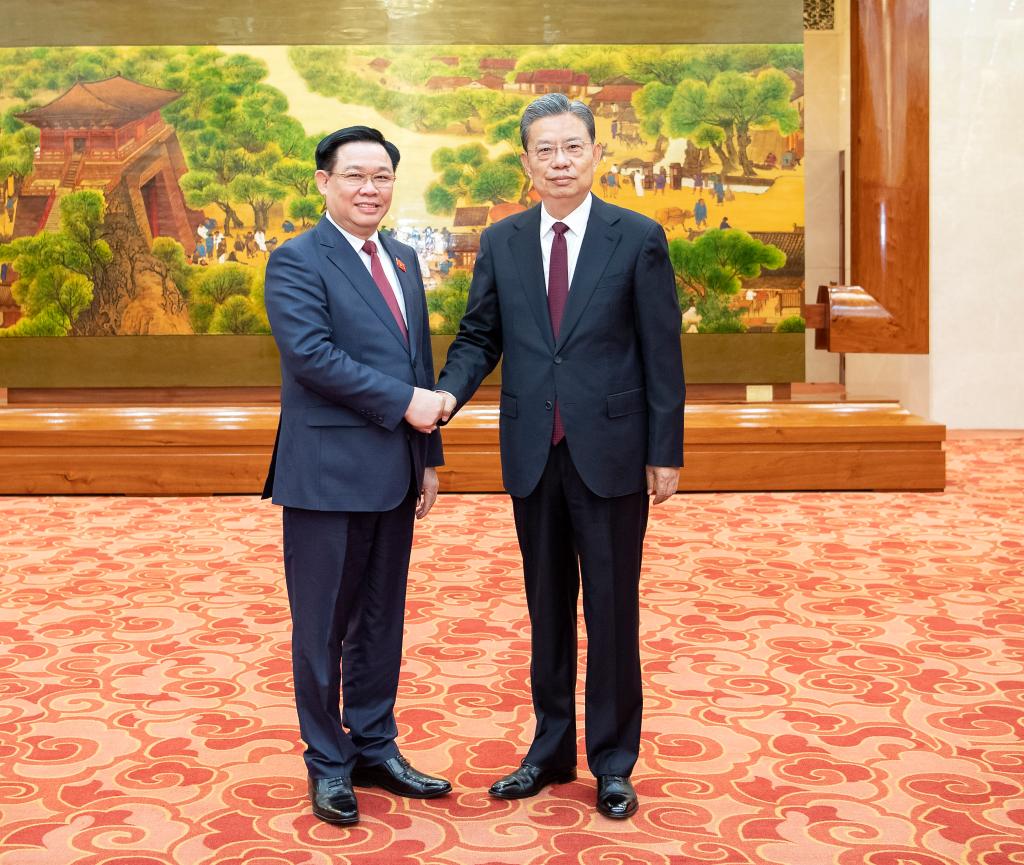 China's top legislator Zhao Leji held talks with Chairman of the National Assembly of Vietnam Vuong Dinh Hue in Beijing on Monday.