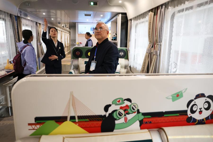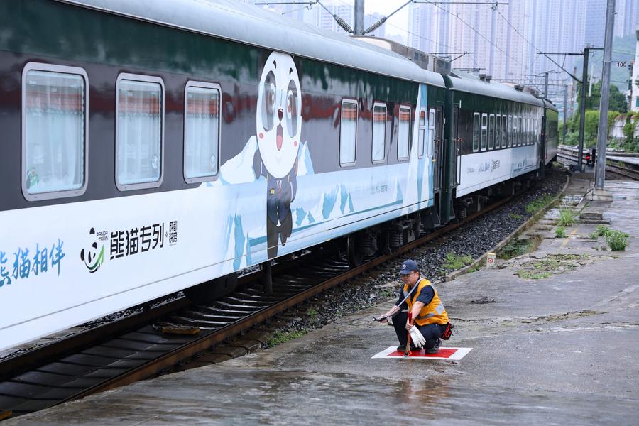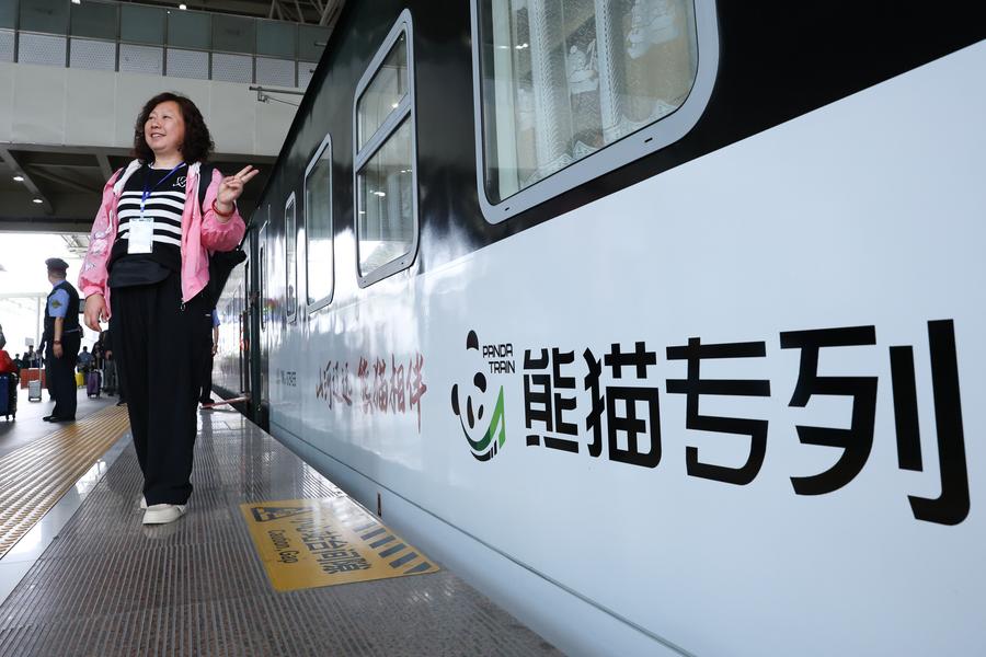 A passenger boards a "Panda Train" at Guiyang railway station in Guiyang, capital of southwest China's Guizhou Province, May 8, 2024. (Xinhua/Liu Xu)A "Panda Train" departs from Guiyang railway station in Guiyang, capital of southwest China's Guizhou Province, May 8, 2024. (Xinhua/Liu Xu)An attendant guides a passenger to board a "Panda Train" at Guiyang railway station in Guiyang, capital of southwest China's Guizhou Province, May 8, 2024.(Xinhua/Liu Xu)Passengers board a "Panda Train" at Guiyang railway station in Guiyang, capital of southwest China's Guizhou Province, May 8, 2024. (Xinhua/Liu Xu)A passenger poses for photos with a "Panda Train" at Guiyang railway station in Guiyang, capital of southwest China's Guizhou Province, May 8, 2024. (Xinhua/Liu Xu)Passengers board a "Panda Train" at Guiyang railway station in Guiyang, capital of southwest China's Guizhou Province, May 8, 2024. (Xinhua/Liu Xu)Passengers pose for photos with a "Panda Train" at Guiyang railway station in Guiyang, capital of southwest China's Guizhou Province, May 8, 2024. (Xinhua/Liu Xu)Passengers board a "Panda Train" at Guiyang railway station in Guiyang, capital of southwest China's Guizhou Province, May 8, 2024.(Xinhua/Liu Xu)