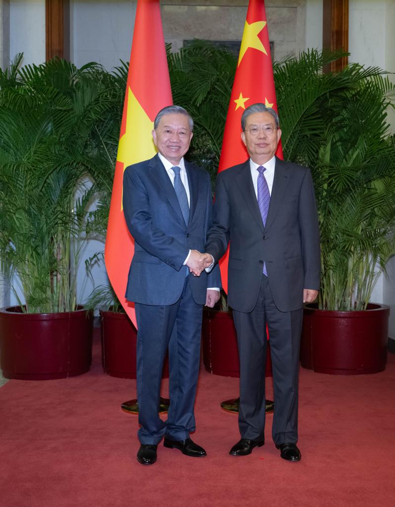 Zhao Leji, China's top legislator, met with To Lam, Vietnamese president and general secretary of the Communist Party of Vietnam (CPV) Central Committee, on Monday in Beijing.