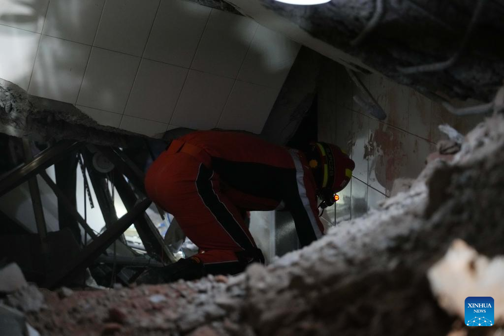 Members from the China Search and Rescue Team carry out rescue work at a quake site in Mandalay, Myanmar, March 30, 2025. Following the devastating earthquake in Myanmar, multiple Chinese rescue teams have arrived in the disaster-stricken areas, working with local responders around the clock to search for survivors.