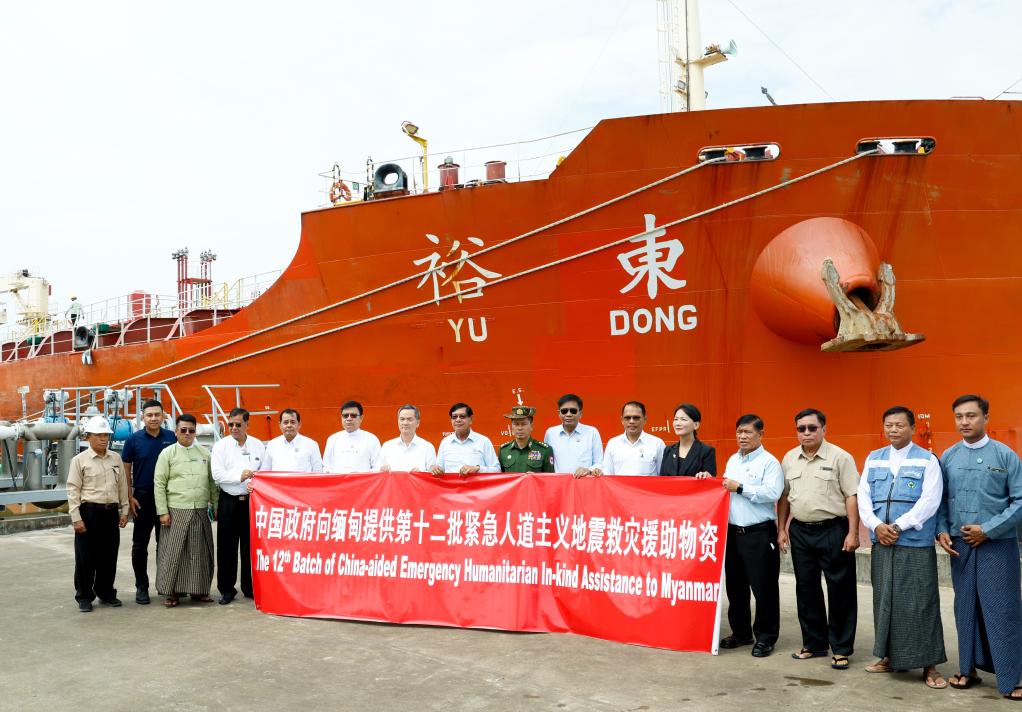 The 12th batch of emergency humanitarian in-kind assistance dispatched by the Chinese government was handed over to Myanmar on Thursday in Yangon, Myanmar.