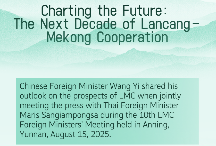 Chinese Foreign Minister Wang Yi will chair the tenth Lancang-Mekong Cooperation Foreign Ministers' Meeting in Anning, Yunnan Province, from August 14 to 15.