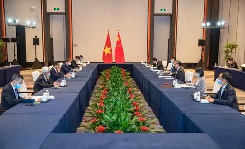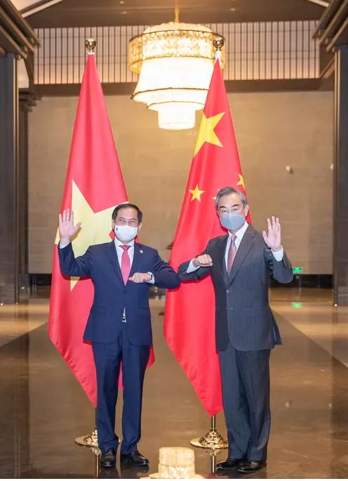Nga?y 8/6/2021, ta?i Tru?ng Kha?nh, Trung Qu??c, U?y viên Qu??c vu?, B?? tr???ng Ngoa?i giao Trung Qu??c V??ng Nghi? co? cu??c h??i ?a?m v??i B?? tr???ng Ngoa?i giao Viê?t Nam Bu?i Thanh S?n.