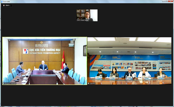 G?n ?ay, V?n phòng Th? ky H?i ch? tri?n l?m Trung Qu?c – ASEAN (g?i t?t là“CAEXPO”) và C?c Xúc ti?n M?u d?ch Vi?t Nam ?? t? ch?c H?i ngh? c?ng tác tr?c tuy?n, bàn th?o các c?ng vi?c liên quan ??n CAEXPO 18 nh? m?i l?nh ??o, t? ch?c h?i ch? tr?c ti?p, h?i ch? tr?c tuy?n, xúc ti?n ??u t? v.v… Phó Ch? nhi?m V?n phòng th? ky CAEXPO T?ng Trung, C?c tr??ng C?c xúc ti?n M?u d?ch Vi?t Nam V? Bách Phú, L?nh s? th??ng m?i T?ng L?nh s? quán Vi?t Nam t?i Nam Ninh Nguy?n H?u Quan cùng tham gia H?i ngh?.