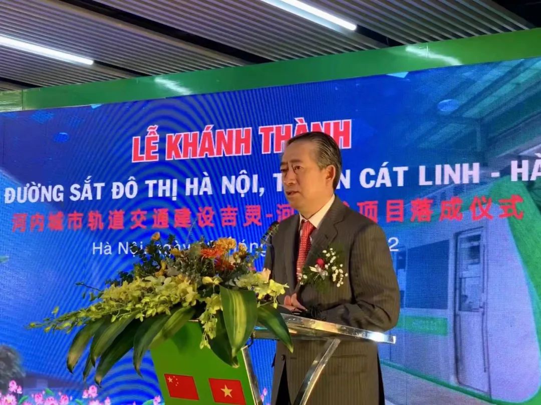 Ngày 13/1, ??i s? Trung Qu?c t?i Vi?t Nam Hùng Ba và B? tr??ng B? Giao th?ng V?n t?i Vi?t Nam Nguy?n V?n Th? ?? tham d? l? khánh thành D? án ???ng s?t ?? th? Hà N?i s? 2, ???c xay d?ng b?ng ngu?n v?n vay ?u ??i c?a Chính ph? Trung Qu?c. ?ng H? T?a C?m, Tham tán C?ng s? th??ng m?i c?a ??i s? quán Trung Qu?c t?i Vi?t Nam, Th? tr??ng B? Ngo?i giao Nguy?n Qu?c D?ng, Th? tr??ng B? Giao th?ng V?n t?i Nguy?n Ng?c ??ng, và Phó Ch? t?ch ?y ban Nhan dan thành ph? Hà N?i Nguy?n M?nh Quy?n c?ng cùng t?i d?.