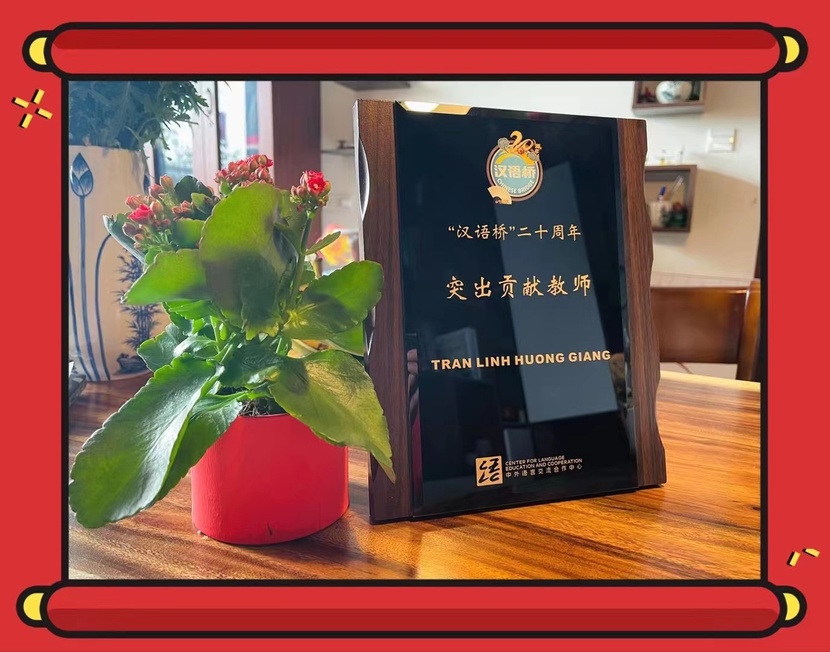 Nh??ng n?m ga?n ?ay, tiê?ng Trung ngày càng ???c nhi?u ng??i dan trên th? gi?i yêu thích, ?iê?u na?y kh?ng thê? ta?ch r??i s?? n?? l??c cu?a ??ng ?a?o gia?o viên da?y tiê?ng Trung trên kh?p thê? gi??i, ho? khiê?n ba?n be? ca?c n?i trên thê? gi??i trong ?o? co? Viê?t Nam hiê?u biê?t va? yêu thi?ch v?n ho?a Trung Qu??c. Gia?i th???ng“Gia?o viên co? ?o?ng go?p xua?t s??c” chi?nh la? s?? biê?t ?n va? ?a?nh gia? cao ???i v??i c? H??ng Giang cu?ng nh? ca?c giáo viên ta?n tam ?ào t?o nh?ng tài n?ng ho?c tiê?ng Trung xua?t s??c ta?i Viê?t Nam, xay ??p nhi?p ca?u h??u nghi? Trung-Viê?t. C? H??ng Giang cho biê?t,“Mi?nh ca?m tha?y ra?t vinh ha?nh. Ch?a bao gi?? nghi? ?ê?n mi?nh co? thê? nha?n ????c ?a?nh gia? cao thê?, ?ay cu?ng la? s?? kh??ng ?i?nh ???i v??i gia?o viên n???c ngoa?i, gia?i th???ng na?y có thê? khuyê?n khi?ch các gi?ng viên có ni?m tin vào c?ng viê?c mà mình ?am mê.”